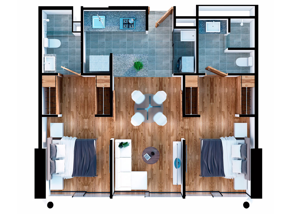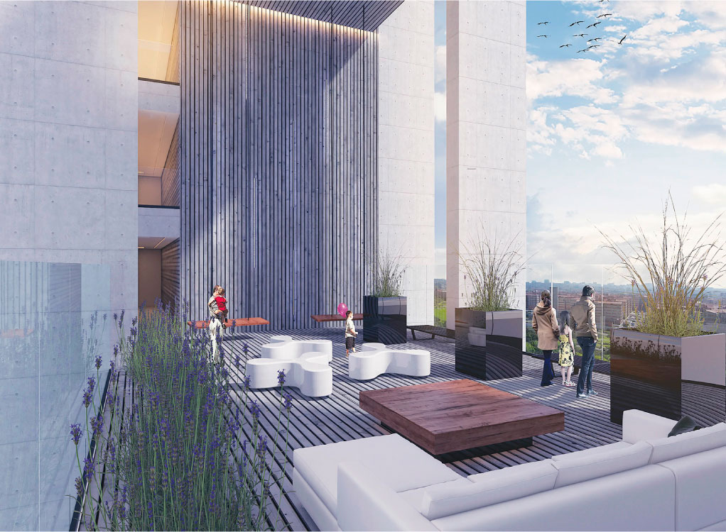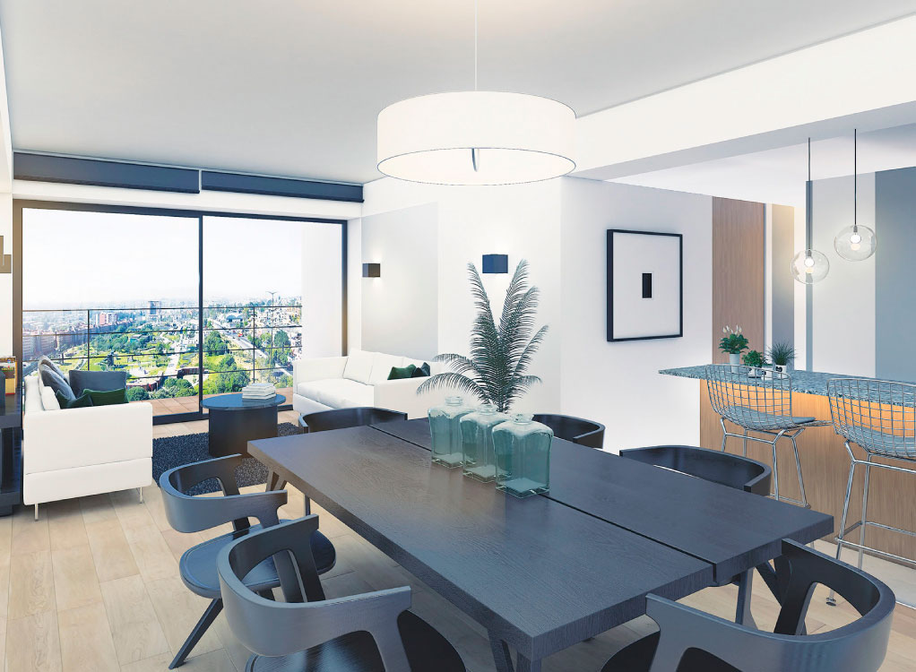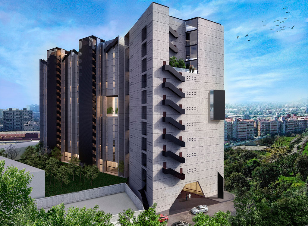 Conjunto de dos torres con 93 departamentos, 11 niveles de oficinas y comercio en planta baja. El Condominio cuenta con un amplio jardín con pista para correr y amenidades en planta baja. Todo el proyecto tiene vista hacia el Bioparque San Antonio.